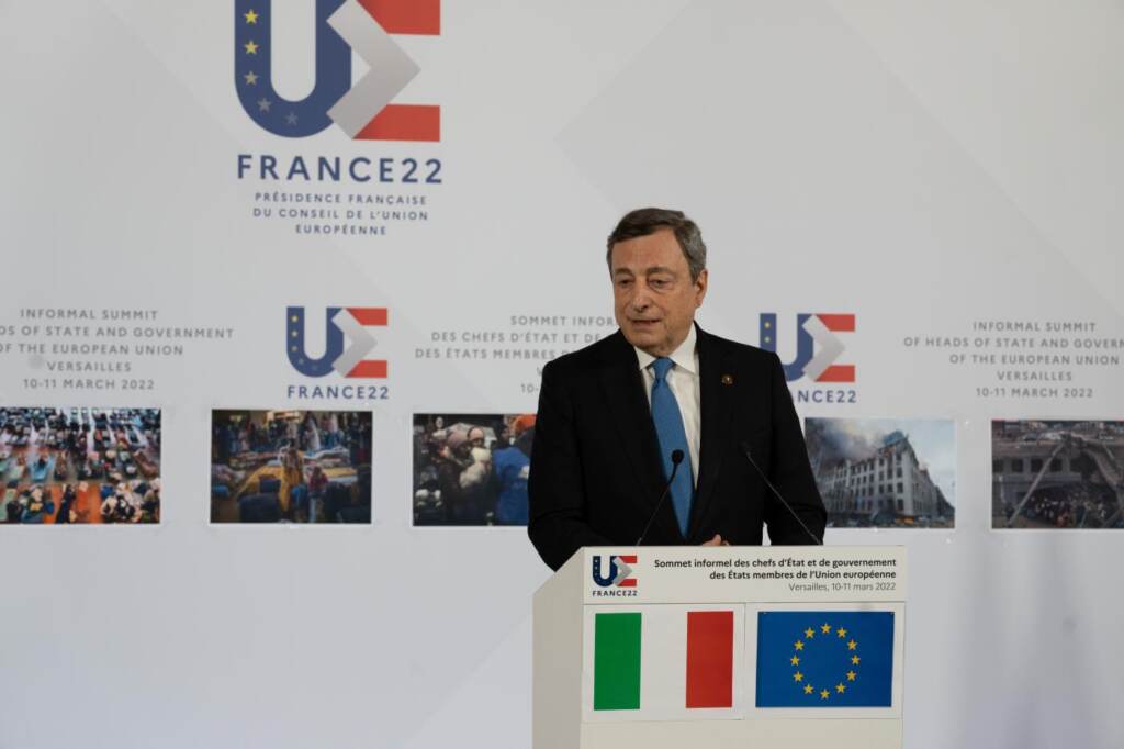 Il presidente del Consiglio Mario Draghi parla al termine del vertice informale dei leader europei a Versailles. Un incontro, che secondo il premier “è stato veramente un successo, raramente ho visto l’Ue così compatta. Specialmente nella discussione di ieri c’era uno spirito di solidarietà su tutti gli argomenti trattati che non credo di ricordare”, ha detto Draghi durante la conferenza stampa.