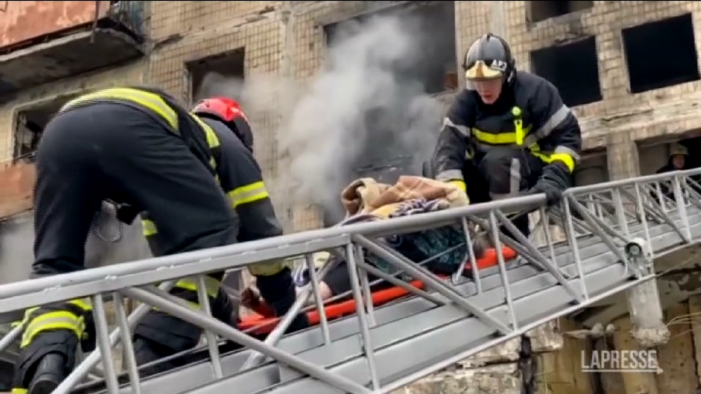 (LaPresse) Bombardato l’aeroporto Antonov di Kiev, il piu grande scalo internazionale per i voli cargo e base militare. Lo riferiscono le autorità della capitale. Colpito anche un condominio di 9 piani sempre a Kiev, ci sarebbero almeno 2 morti e tre feriti. Altre 15 persone sono state salvate dall’incendio che si è sviluppato. Nel video i soccorsi a una donna anziana.