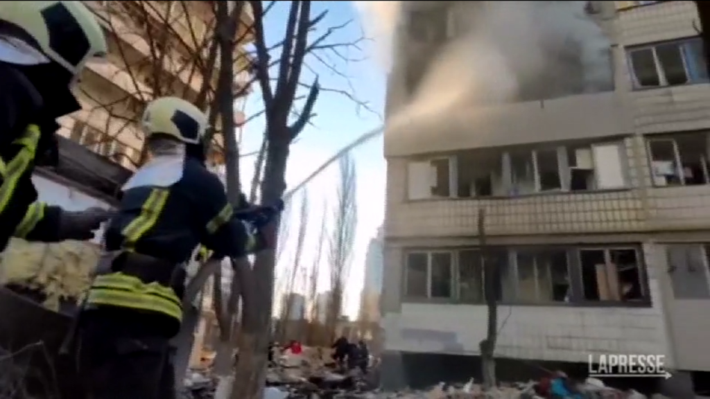 (LaPresse) – Un edificio di 12 piani nel centro di Kiev è stato danneggiato dai colpi dell’artiglieria russa: l’agenzia per le emergenze della capitale ucraina ha rilasciato immagini dello stabile. Due persone sono rimaste ferite. L’ultimo piano dell’edificio è stato distrutto e un incendio ha danneggiato ulteriormente la struttura. Il bombardamento è avvenuto nel distretto di Shevchenko di Kiev alle 6 del mattino ora locale.