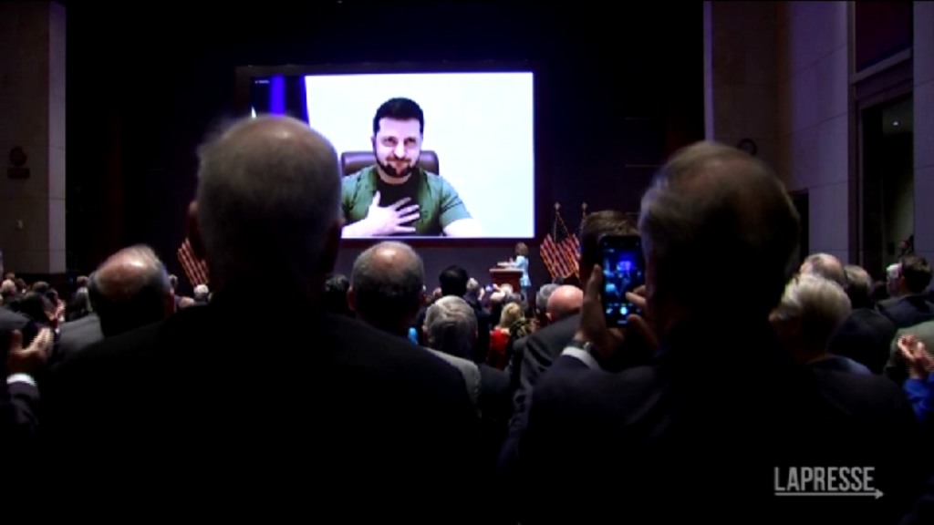 (LaPresse) Standing ovation per Volodymyr Zelensky al Congresso americano dove si è collegato da remoto per lanciare il suo appello agli Stati Uniti. In piedi per due minuti i membri del congresso hanno applaudito per due minuti il presidente ucraino introdotto dalla speaker Nancy Pelosi che ha urlato “Slava Ukraini”, “Gloria Ucraina”.