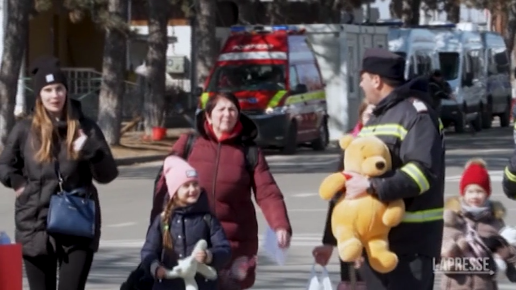(LaPresse) Al confine tra Ucraina e Romania il flusso di persone in fuga dalla guerra è quasi costante. Tante le persone, compresi i bambini della comunità di Siret, che lasciano pupazzi e giocattoli per i loro coetanei ucraini. I profughi che arrivano raccontano tutti di una situazione di crisi umanitaria grave in Ucraina: mancanza di acqua, cibo e medicine.