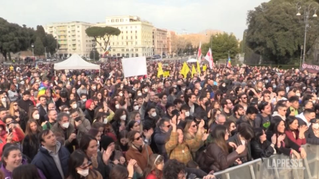 Musicisti, attori e performer sul palco di Piazza San Giovanni per chiedere di fermare la guerra in Ucraina e per dire no a tutte le guerre del mondo. È questa l’iniziativa “Insieme per la pace” organizzata dal sindacalista Aboubakar Soumahoro che ha portato in piazza alcune migliaia di persone per far tacere le armi attraverso l’arte, la musica, e le tante testimonianze di chi dagli orrori della guerra è riuscito a scappare.