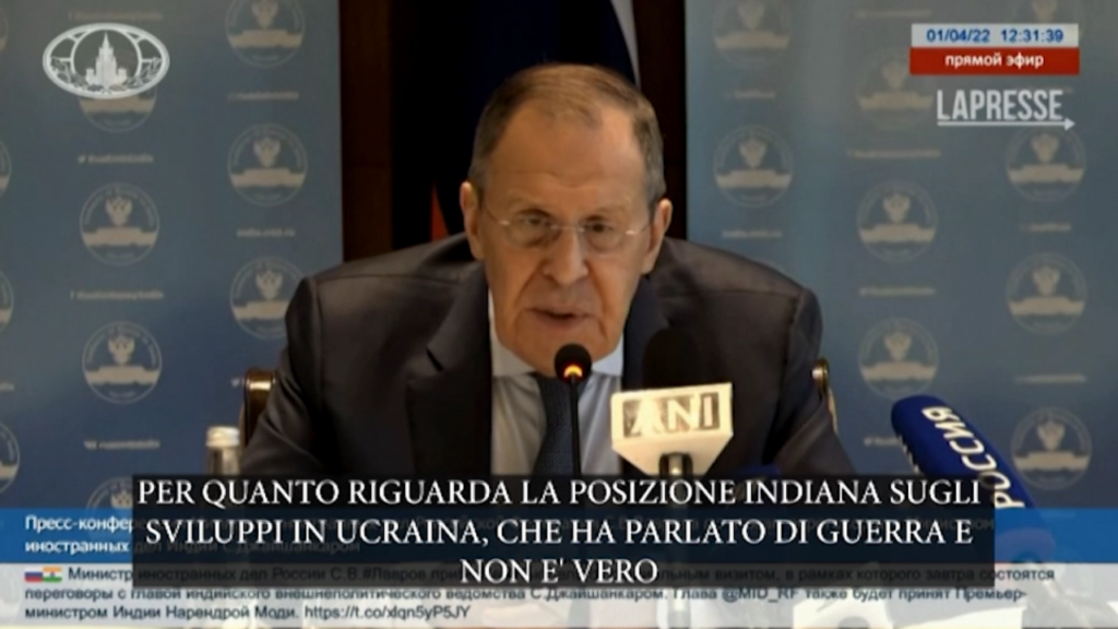 (LaPresse) Il ministro degli Esteri russo Sergey Lavrov ha ribadito, parlando in una conferenza stampa a Nuova Delhi a seguito di un incontro con il ministro degli Affari esteri indiano Subrahmanyam Jaishankar, che la Russia non vuole dipendere da un sistema internazionale “i cui padroni possono rubarti i soldi dall’oggi al domani”, commentando la richiesta di pagare in rubli le forniture di gas. Lavrov ha nuovamente negato che quella in corso in Ucraina sia una guerra e ha parlato di ‘operazione speciale militare’ che punta a obiettivi militari e non civili per annientare ogni possibile ‘minaccia’ ucraina verso la Russia. Capacità che secondo il ministro degli esteri russo è stata rinforzata dagli Usa e dai Paesi Nato nel tentativo di rendere anti-russo il Paese guidato da Zelensky.