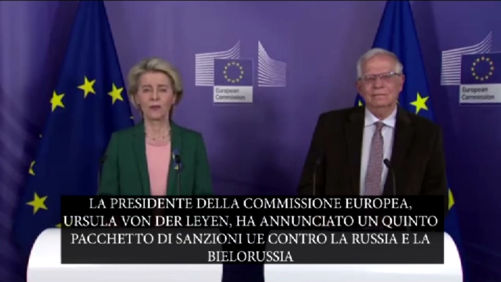 (LaPresse) La presidente della Commissione europea, Ursula von der Leyen, ha annunciato un quinto pacchetto di sanzioni Ue contro la Russia e la Bielorussia che comprende un blocco all’importazione di carbone, blocco dell’export di computer, chip e tecnologie, nuove sanzioni contro oligarchi, divieto di transazioni economiche per 4 banche russe e divieto alle società russe di partecipare ad appalti pubblici negli stati membri. Nessuna decisione su sanzioni che includano il gas russo