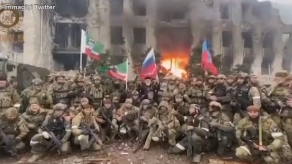 In un video diffuso sui social e su Telegram alcuni combattenti ceceni del comandante Ramzan Kadyrov celebrano la caduta e “liberazione” di Mariupol, una delle città in cui i combattimenti in Ucraina sono più intensi, sventolando bandiere con i colori ceceni davanti ad un edifico bombardato e distrutto. “Mariupol è nostra”, è scritto nel testo che accompagna il video, e ” suoi abitanti sono liberti per sempre dall’oppressione nazionalista”. “L’edificio amministrativo, strategicamente importante, dello stabilimento Azovstal è sotto controllo e tutto il territorio vicino e’ stato sgomberato”.