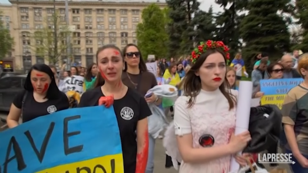 Le mogli e le madri dei soldati che combattono le forze russe nell’acciaieria assediata di Azovstal nella città di Mariupol hanno manifestato a Kiev: hanno chiesto l’evacuazione dell’acciaieria mentre si dirigevano verso l’ufficio del presidente ucraino Volodymyr Zelensky.