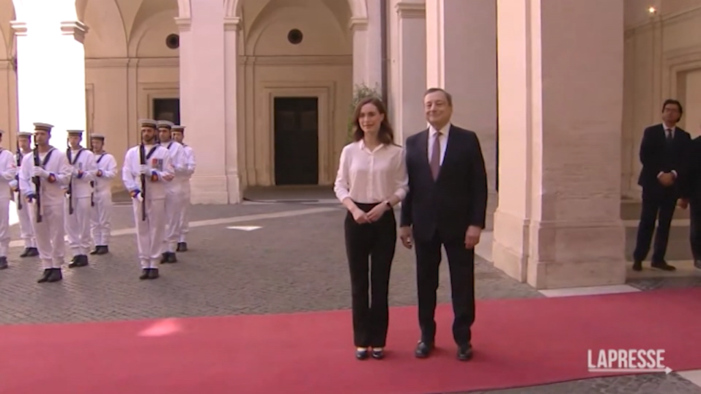 (LaPresse) La premier finlandese Sanna Marin arriva a palazzo Chigi per incontrare Mario Draghi. E’ lo stesso presidente del Consiglio ad accoglierla nel cortile dove si è tenuto il picchetto d’onore.