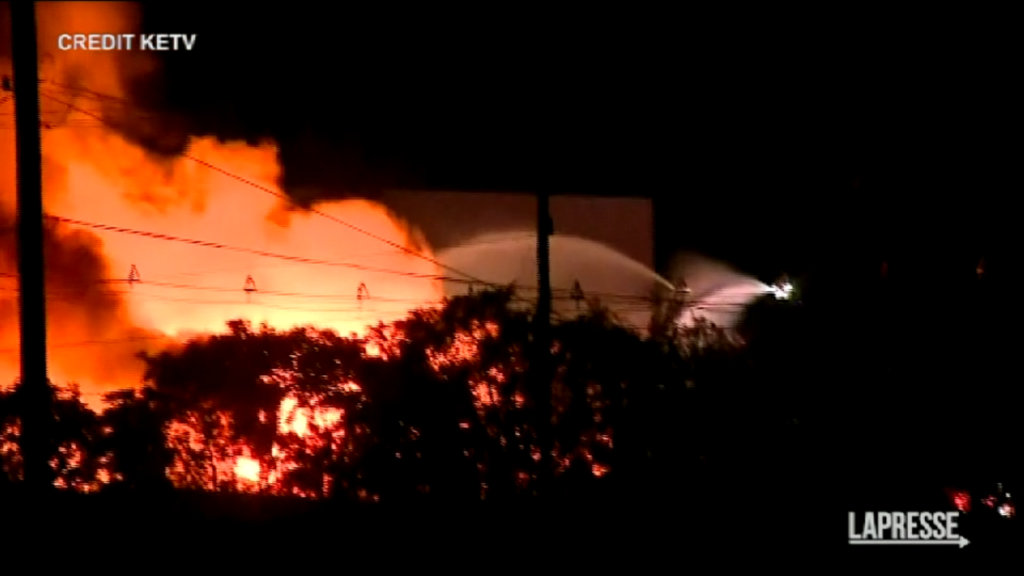 (LaPresse) Un incendio ha devastato un’azienda chimica lunedì sera a sud-ovest del centro di Omaha, negli Stati Uniti, costringendo alcuni residenti ad evacuare e lasciando migliaia di persone senza corrente. Le immagini del vasto rogo sono state diffuse da KETV, per fortuna non si registrano feriti. La prima chiamata ai soccorsi è arrivata poco prima delle 19. Secondo il suo sito web, Nox-Crete produce rivestimenti, indurenti liquidi per pavimenti, riempitivi per giunti, composti per l’indurimento e la sigillatura e idrorepellenti. Le autorità locali hanno invitato le persone che vivevano nelle vicinanze, tra la 13esima e la 20esima, da Leavenworth a Martha, a evacuare e chi non poteva farlo è stato invitato a rimanere in casa con le finestre chiuse. L’Omaha Public Power District ha dichiarato che più di 2.500 clienti sono rimasti senza elettricità nei quartieri vicini all’incendio.