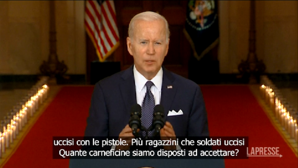 (Lapresse) “Quante ulteriori carneficine siamo disposti ad accettare?” Con queste parole il presidente Joe Biden ha rivolto un’appassionata richiesta al Congresso di agire sul controllo delle armi. In un discorso alla nazione giovedì sera, ha invitato i legislatori a ripristinare i limiti alla vendita di armi d’assalto e riviste ad alta capacità dopo una serie di sparatorie di massa nel paese. Biden sta cercando di aumentare la pressione sul Congresso affinché approvi leggi più severe, sebbene tali sforzi siano falliti sulla scia delle violenze passate. Il discorso segue le recenti sparatorie di massa a Tulsa, in Oklahoma; Uvalde, Texas e Buffalo, New York.