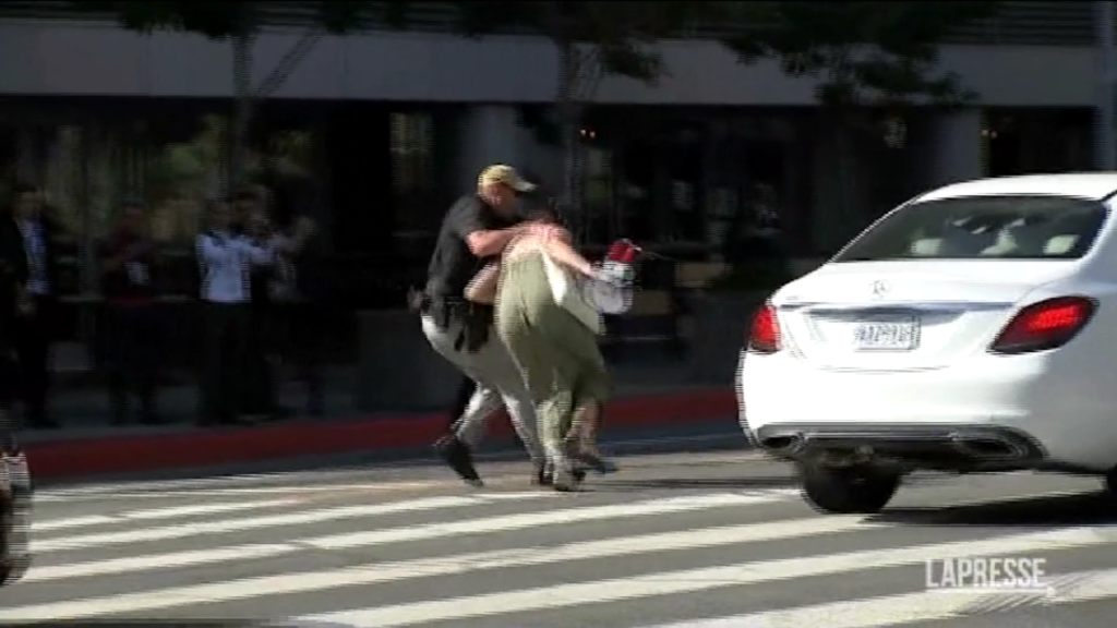 Una manifestante ha intralciato il corteo del presidente degli Stati Uniti Joe Biden a Los Angeles. Nel video si vede la donna invadere la carreggiata e urlare con un megafono degli slogan rivolti alla carovana presidenziale. Subito bloccata dalle forze dell’ordine è stata poi arrestata. Il corteo di Biden non ha subito rallentamenti ma adesso le autorità americane condurranno tutte le indagini sul caso.
