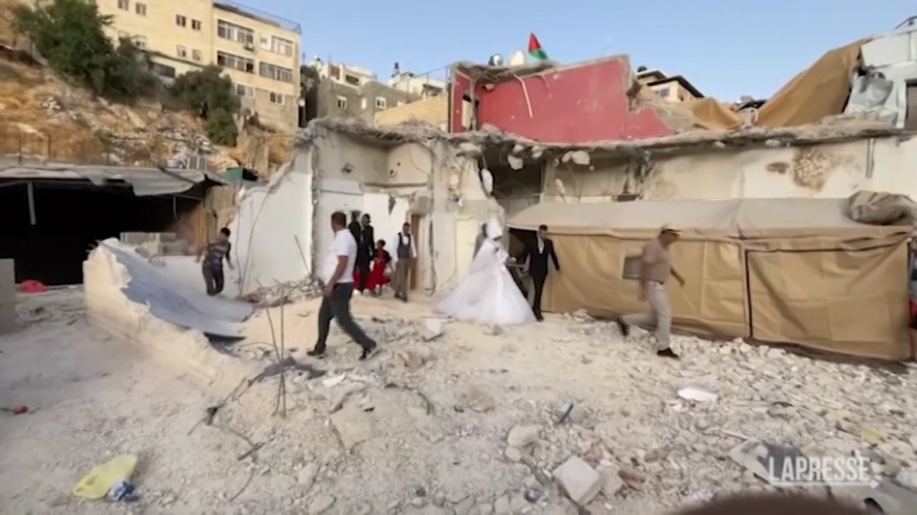 Gli sposi palestinesi hanno celebrato le loro nozze davanti alle rovine della casa di al-Rajby nel quartiere di Silwan nella zona est di Gerusalemme. Le autorità israeliane hanno demolito l’edificio, sfollando i suoi 35 residenti il mese scorso, dicendo che era stato costruito senza permesso municipale. Secondo i palestinesi di Gerusalemme est è quasi impossibile ottenere l’autorizzazione edilizia, ecco perché sono costretti a costruire case senza permessi. La città, sacra alle tre religioni abramitiche, è il punto focale del decennale conflitto israelo-palestinese.