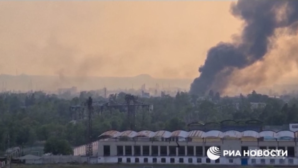 L’agenzia di stampa statale russa RIA Novosti ha condiviso domenica un filmato che mostra colonne di fumo che salgono al cielo dall’impianto chimico Azot nella città ucraina di Severodonetsk da giorni sotto assedio russo. Nel fine settimana sono emerse notizie secondo cui centinaia di combattenti e residenti si sarebbero nascosti nell’impianto, ricordando lo stallo durato settimane nell’Azovstal di Mariupol. Il governatore di Luhansk ha fatto sapere sui social media che i depositi di carburante e le sostanze chimiche hanno preso fuoco, mettendo a rischio la vita dei civili.