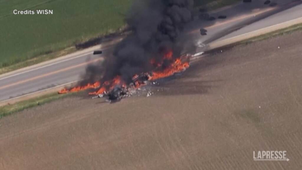 (LaPresse) Incidente mortale negli Stati Uniti dove due semirimorchi si sono scontrati nel sud-est del Wisconsin, sulla statale 11 a est di Union Grove a poco più di 40 chilometri da Milwauke. Due le vittime secondo l’ufficio dello sceriffo. Impressionante la dinamica dell’incidente con la collisione tra i due autoarticolati, per cause ancora da accertare, che ha fatto sbalzare fuoristrada entrambi facendo ribaltare uno dei due che trainava un’autocisterna. Immediato l’incendio e la conseguente esplosione col fumo visibile a chilometri di distanza.