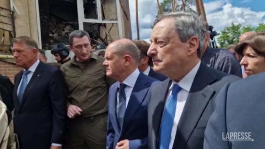 (LaPresse) Il premier Mario Draghi in Ucraina, insieme a Emmanuel Macron e Olaf Scholz, è arrivato a Irpin, alla periferia di Kiev, teatro di feroci combattimenti. “Avete il mondo dalla vostra parte” ha detto, rivolgendosi alle autorità locali. Nelle immagini la distruzione dovuta al conflitto, tra Hostomel e Irpin.