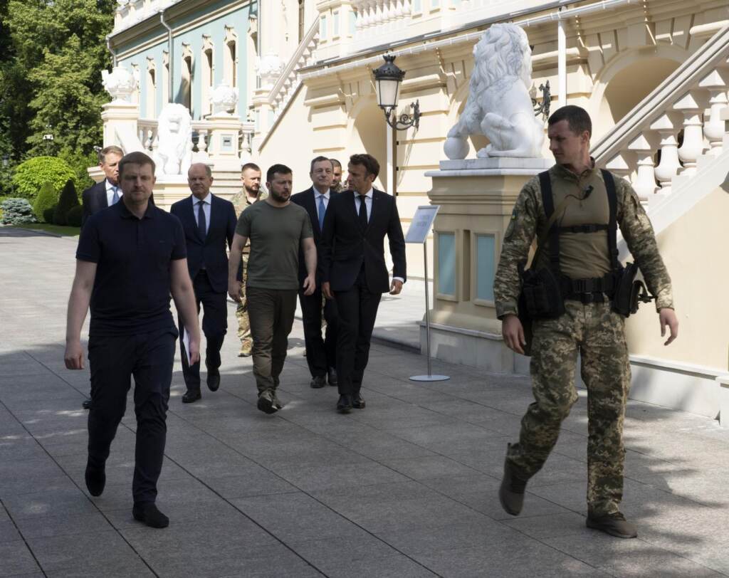 Il presidente del Consiglio Mario Draghi, insieme al presidente francese Emmanuel Macron, al leader tedesco Olaf Scholz e al presidente romeno Klaus Iohannis sono arrivati al palazzo presidenziale di Kiev per incontrare Volodymyr Zelensky