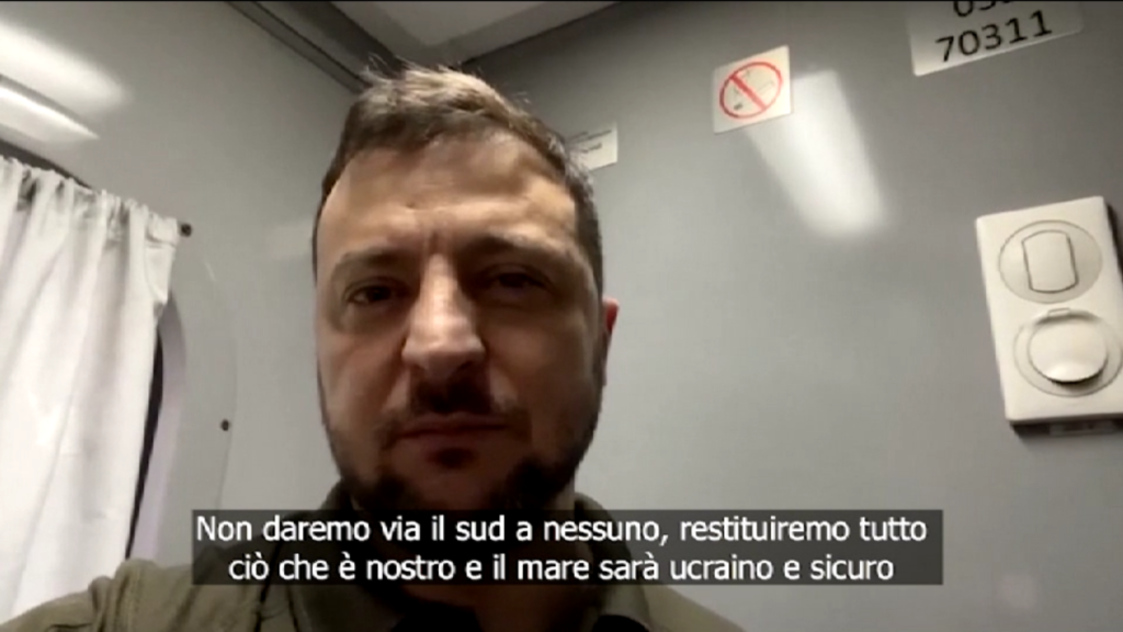 (LaPresse) – “Non daremo via il Sud a nessuno e tutto ciò che è nostro lo riprenderemo”. Così il presidente ucraino, Volodymyr Zelensky, in un video messaggio, che sembra essere registrato su un treno in movimento, dopo avere visitato ieri la regione di Mykolaiv nel sud del Paese.