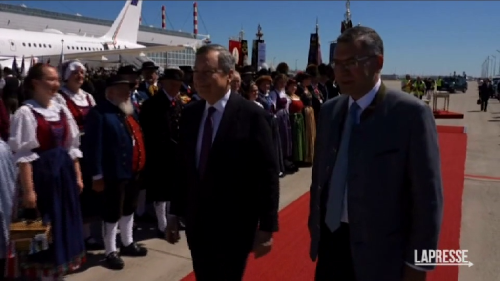 Mario Draghi arrivato in aereo a Monaco per partecipare al G7 in Germania. Il premier poi è stato portato in elicottero al castello di Elmau, nelle Alpi Bavaresi, sede del vertice tra i grandi della terra.