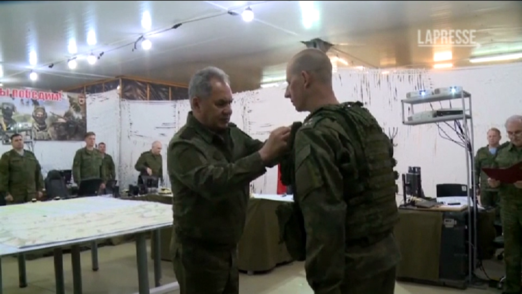 Il ministro della Difesa russo Sergei Shoigu ha ispezionato le truppe di Mosca in Ucraina. Shoigu ha anche assegnato medaglie ai militari russi per i loro sforzi nell’operazione militare speciale. Il video è stato rilasciato dal Ministero della Difesa russo lo stesso giorno in cui la Russia ha attaccato Kiev nelle prime ore del mattino, colpendo almeno due edifici residenziali, secondo quanto riportato dal sindaco dell capitale ucraina Vitali Klitschko, mentre altrove le truppe russe hanno consolidato le loro conquiste nell’est.