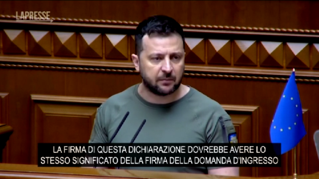 Il presidente ucraino Volodymyr Zelensky ha affermato che il percorso dell’Ucraina verso l’adesione all’Unione europea “non dovrebbe richiedere anni o decenni” e ha promesso di rendere la parte ucraina del processo “perfetta”. “Oggi, insieme al presidente della Verkhovna Rada dell’Ucraina e al primo ministro, firmiamo una dichiarazione congiunta, che è un segnale di unità di tutti i rami del governo e una prova della nostra determinazione a raggiungere l’obiettivo strategico dell’Ucraina di una piena adesione all’Unione europea”, ha affermato Zelensky. “Il nostro percorso verso l’adesione non deve richiedere anni o decenni. Dobbiamo superare questo percorso rapidamente. Rendere perfetta la nostra parte di lavoro per consentire ai nostri amici dell’Unione Europea di prendere un’altra decisione storica per noi, altrettanto rapidamente e in modo consolidato”.