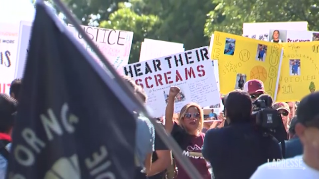 (LaPresse) – A Uvalde in Texas i cittadini hanno partecipato a una marcia di protesta contro la violenza delle armi da fuoco. Nella cittadina il 24 maggio il 18enne Salvador Ramos ha ucciso 19 studenti e 2 insegnanti dopo aver fatto irruzione armato alla Robb Elementary School. Tra i partecipanti al corteo c’erano anche alcuni parenti delle vittime della strage.
