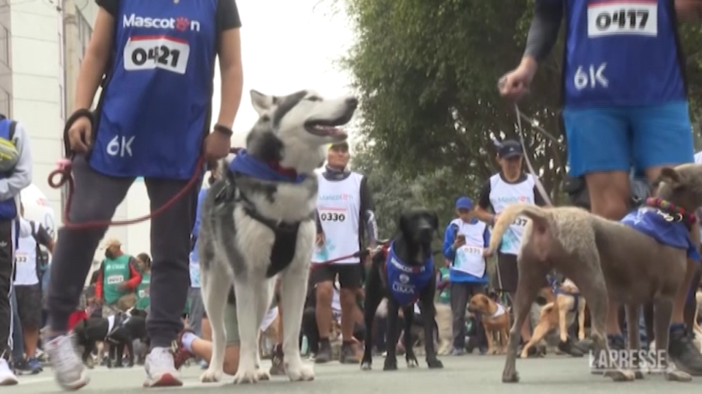 (LaPresse) I proprietari di animali domestici di Lima, in Perù, hanno partecipato a una corsa con i loro compagni a quattro zampe nell’ambito di un evento per celebrare la ‘Giornata internazionale del cane’. Gli animali sono stati visitati da un veterinario prima della gara per assicurarsi che fossero in buone condizioni di salute. L’evento mirava anche ad incoraggiare i proprietari ad adottare abitudini sane, come ad esempio camminare e correre con i propri cani.