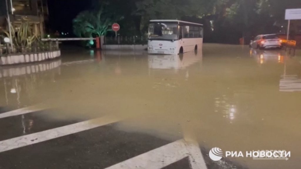 Un’ondata di maltempo ha colpito la Russia meridionale e in particolare la città di Sochi, sede delle Olimpiadi invernali del 2014. Strade invase dall’acqua con diverse auto travolte dalle inondazioni. Una donna è morta. In un’ora sono caduti oltre 76 millimetri di pioggia.