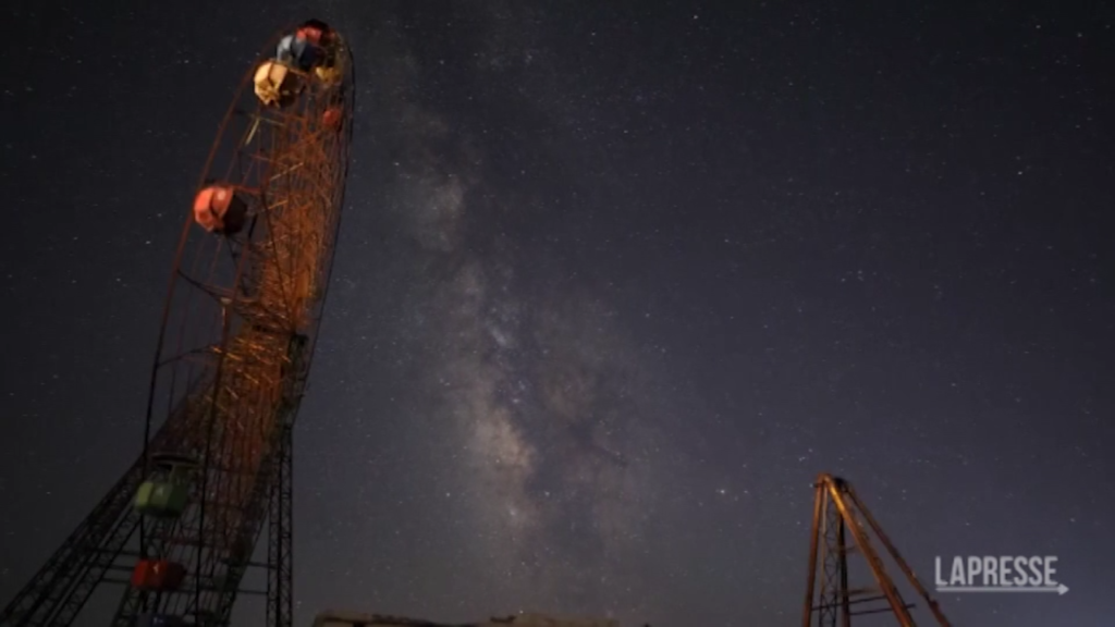 Lo spettacolare time-lapse della Via Lattea che passa nel cielo sopra la provincia di Idlib in Siria, e illumina un luna park in rovina nella città di al-Nayrab, teatro di combattimenti fra ribelli e regime di Damasco.