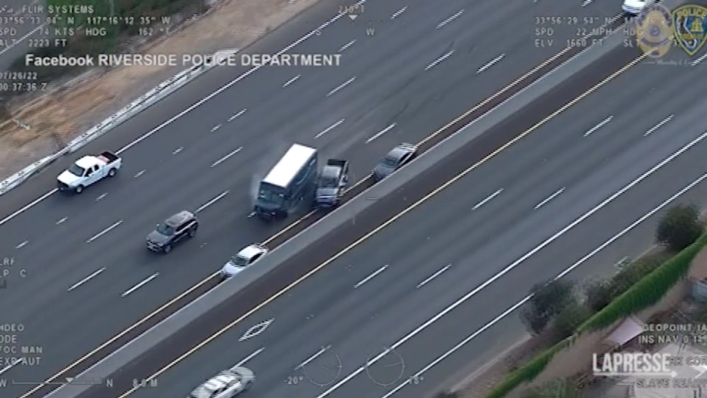 (LaPresse) Prima ha rapinato alcune abitazioni, poi, per fuggire, ha rubato un camion di Amazon, schiantandosi poi contro diverse auto in corsa. E’ accaduto a Riverside, in California: il 32enne è stato inseguito dalla polizia di Riverside, che lo ha localizzato con il GPS. Nella fuga ha colpito varie auto e il camioncino ha smesso di funzionare. A quel punto ha abbandonato il mezzo per fuggire a piedi ma non è riuscito a superare le barriere ed è stato arrestato. L’uomo alla guida si chiama Quintin Jarnall Larks, 32 anni, di Las Vegas: è stato portato nel Robert Presley Detention Center con le accuse di tentato omicidio, rapina con violazione di domicilio, furto d’auto, aggressione con arma letale, fuga dalla polizia e sospetto di guida sotto l’effetto di droghe, provocando lesioni a terzi.