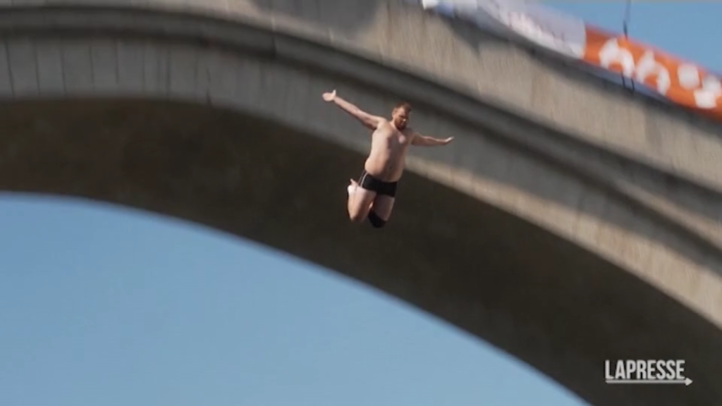 (LaPresse) Si è tenuta a Mostar, in Bosnia, la competizione annuale che vede sfidarsi tuffatori di diversa provenienza che si gettano dal celebre ponte di Mostar, alto 23 metri, patrimonio dell’Unesco. Il miglior tuffo nelle fredde acque del fiume Narenta (in bosniaco Neretva) è stato vinto da Evald Krnic, del Montenegro, che ha ricevuto il punteggio migliore tra i 31 concorrenti in gara. Un migliaio gli spettatori della gara di cliff diving quest’anno. Si tratta, secondo gli organizzatori, della 456esima competizione sul ponte di origini ottomane, che risale al 1566. Il ponte è diventato simbolo della guerra in Bosnia (1992-95), poiché fu distrutto nei primi anni Novanta e poi ricostruito dopo la fine del conflitto.