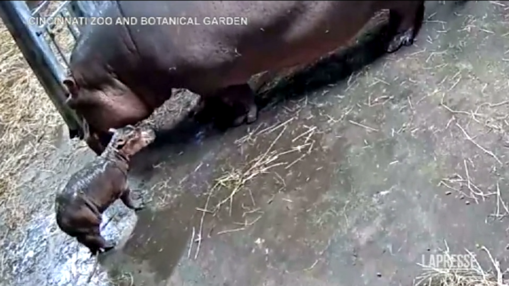 (LaPresse) Lo zoo di Cincinnati ha celebrato la nascita di un ippopotamo, fratello di Fiona, che era diventata una star internazionale perché era nata prematura nel 2017. “Il cucciolo pesa già più del doppio di quanto pesava Fiona e già cammina” ha detto la direttrice dello Zoo. La mamma, l’ippopotamo Bibi, 23 anni, è rimasta incinta inaspettatamente perché utilizzava anticoncezionali. Nelle immagini si vede il piccolo ippopotamo rotolarsi e accoccolarsi accanto alla madre.