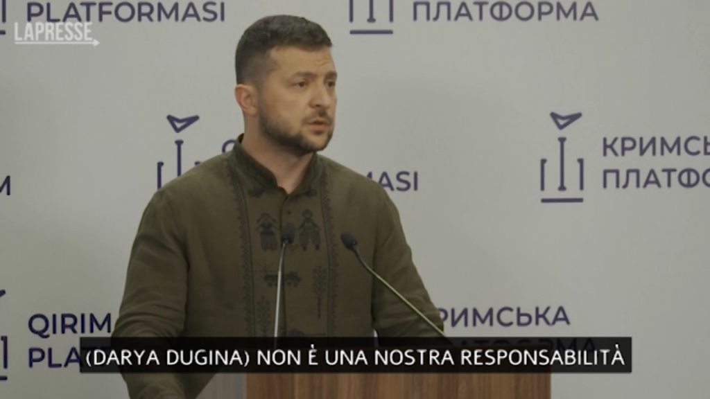 (LaPresse) Il presidente ucraino Volodymyr Zelensky ha negato la responsabilità di Kiev nell’omicidio della giornalista russa Darya Dugina, aggiungendo che la sospettata dell’attentato non è una cittadina ucraina. “Non è una nostra responsabilità”, ha detto. “Non è una cittadina del nostro Paese, non siamo interessati a lei. Non è nel territorio dell’Ucraina, occupata o meno”, ha aggiunto. In conferenza stampa ha anche chiesto alla comunità internazionale di emanare un ultimatum nei confronti della Russia affinché lasci i territori della centrale di Zaporizhzhia.