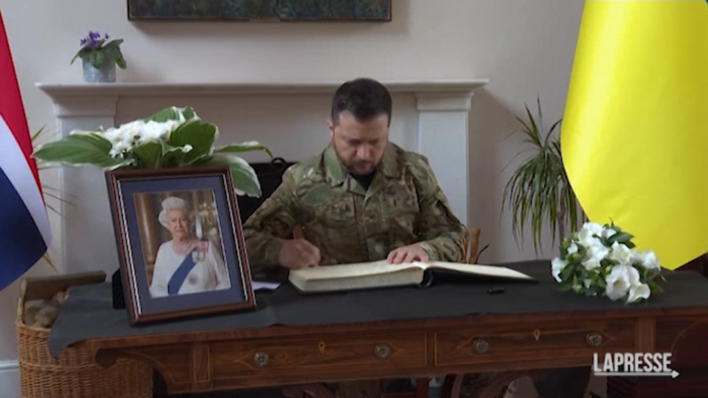 (LaPresse) Il Presidente ucraino ha onorato lunedì la memoria della defunta Regina Elisabetta II. Volodymyr Zelensky si è recato in visita all’ambasciata Gb a Kiev: ha deposto dei fiori presso il suo ritratto e ha lasciato un messaggio nel libro delle condoglianze. “Il ricordo di Sua Maestà e del suo servizio disinteressato al popolo rimarrà per sempre nella storia dell’umanità”, ha scritto Zelensky.