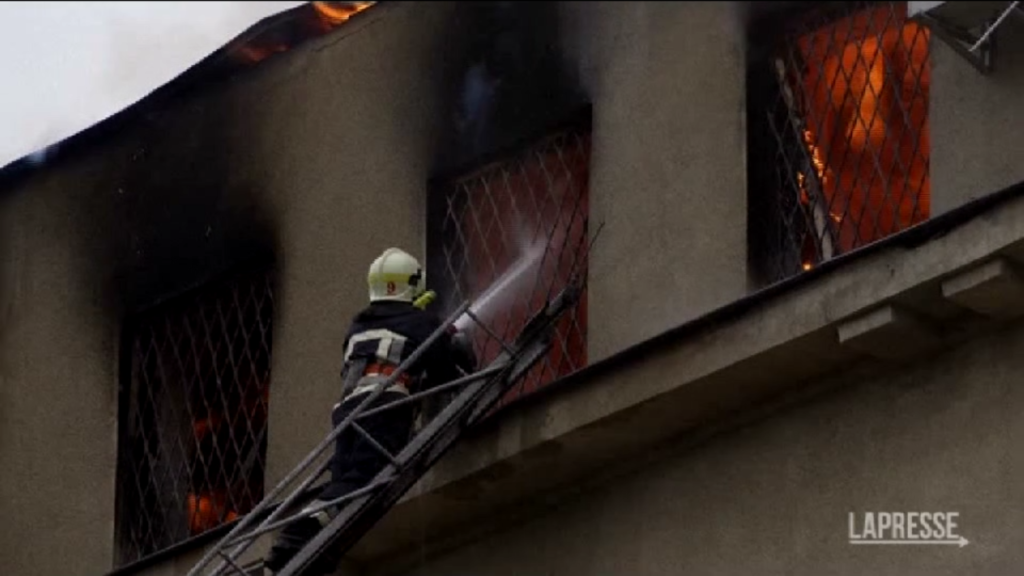 Sono proseguiti i raid russi su Kharkiv, città dell’ucraina orientale. Colpito da un missile un edificio della polizia amministrativa. Una persona è morta. Nelle immagini le squadre dei vigili del fuoco al lavoro per fermare le fiamme. I bombardamenti russi continuano nonostante l’avanzata delle truppe ucraine proprio nei territori orientali del Paese tanto da aver raggiunto il confine con la Russia.