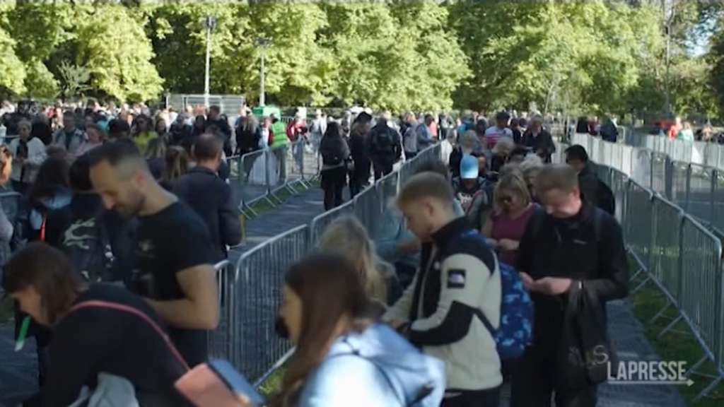 (LaPresse) Oltre 14 ore di coda per rendere omaggio alla Regina nella Westminster Hall. I sudditi di Elisabetta II non vogliono però rinunciare all’ultimo saluto alla sovrana 96enne, morta lo scorso 8 settembre. “Abbiamo panini e bevande, ce la caveremo”, racconta una donna. Lo staff cerca di caricare la gente in coda anche con le battute. “Mancano solo 44 ore”, scherza un membro dello servizio d’ordine.