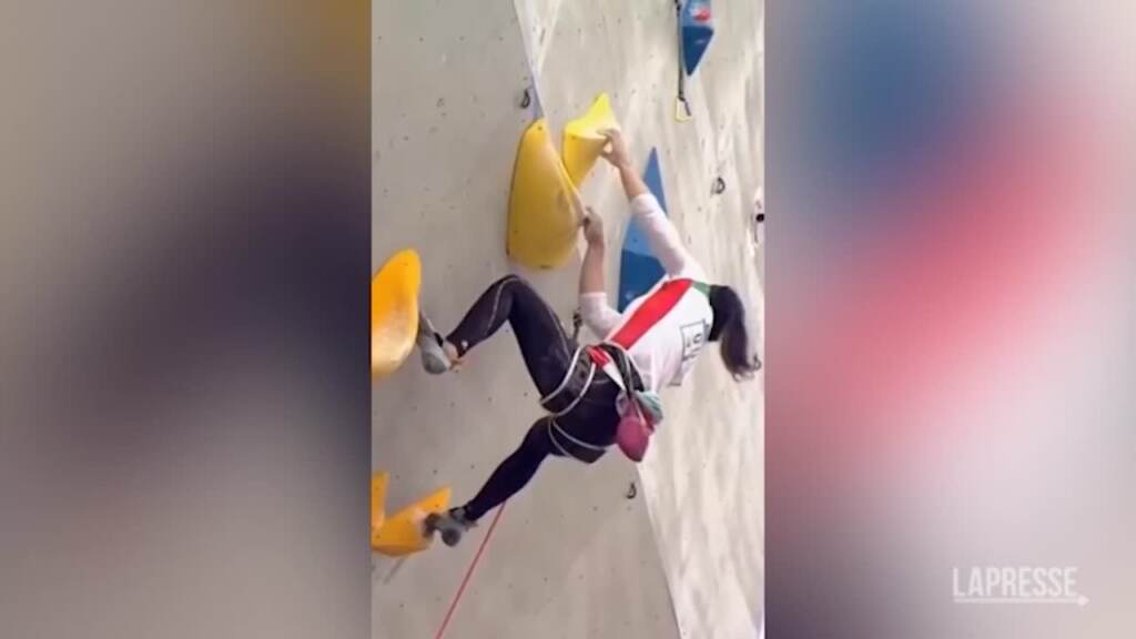(LaPresse) La 33enne iraniana Elnaz Rekabi mentre gareggia senza l’hijab obbligatorio ai campionati asiatici di arrampicata sportiva a Seul. Un gesto audace a sostegno delle sue connazionali.