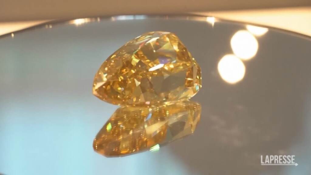 Un diamante giallo, a forma di pera, con taglio di 303 carati è stato svelato all’interno di uno showroom di Dubai. “È uno dei diamanti tagliati più grandi del mondo”, ha dichiarato Sophie Stevens, specialista di gioielli di Sotheby’s. Il grande diamante giallo è stato presentato dalla casa d’aste Sotheby’s ed è chiamato “Golden Canary”. Mostrato al pubblico per la prima volta a Dubai sarà poi portato a Hong Kong, Taipei e Ginevra, prima di concludere il suo tour a New York dove sarà venduto all’asta. “La stima per il Golden Canary, che pesa 303,15 carati, si attesta intorno ai $ 50 milioni”, ha aggiunto Stevens.