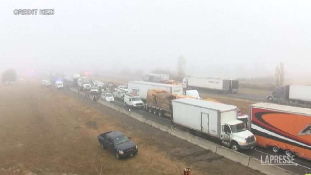 (LaPresse) Maxi-tamponamento in Oregon, negli Stati Uniti, per colpa della nebbia: coinvolti circa 60 veicoli, tra cui 20 semirimorchi. Nell’incidente una persona è morta, diversi i feriti. (NO RE-SALE, RE-USE OR ARCHIVE)