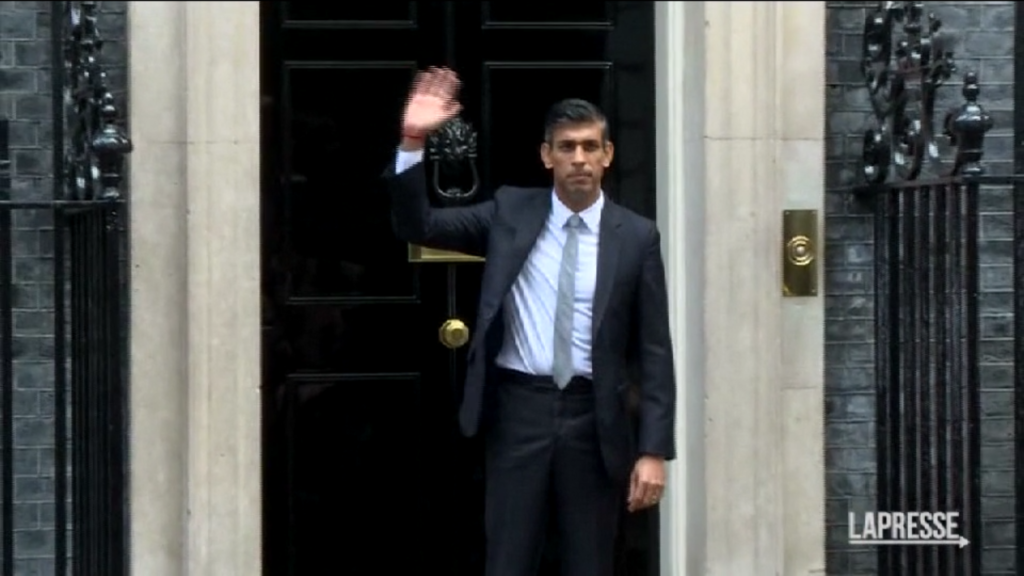 (LaPresse) Rishi Sunak entra al 10 di Downing Street da primo ministro britannico. Il leader Tory ha ricevuto ufficialmente l’incarico da Re Carlo III.