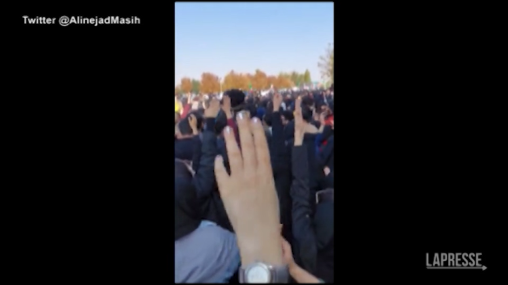 Sono proseguite anche domenica le proteste degli studenti universitari in Iran dopo l’avvertimento rivolto ai manifestanti dal comandante delle Guardie Rivoluzionarie Hossein Salami, che aveva diffidato dallo scendere di nuovo in strada. Nelle immagini gli studenti dell’ateneo di Zanjan gridano slogan contro il regime degli ayatollah. La scorsa notte gli studenti di varie università, tra cui quella di Zanjan, erano stati aggrediti nei dormitori e sequestrati dalle forze di polizia.