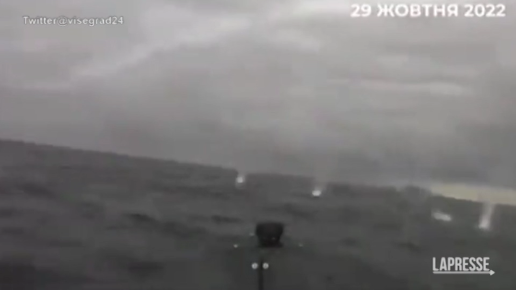 L’esercito ucraino ha diffuso un video delle barche-droni che hanno attaccato le navi russe nel porto di Sebastopoli, in Crimea. Quattro unità da guerra della flotta del Mar Nero della Federazione Russa, tra cui una fregata e una nave d’assalto anfibia, sono esplose.