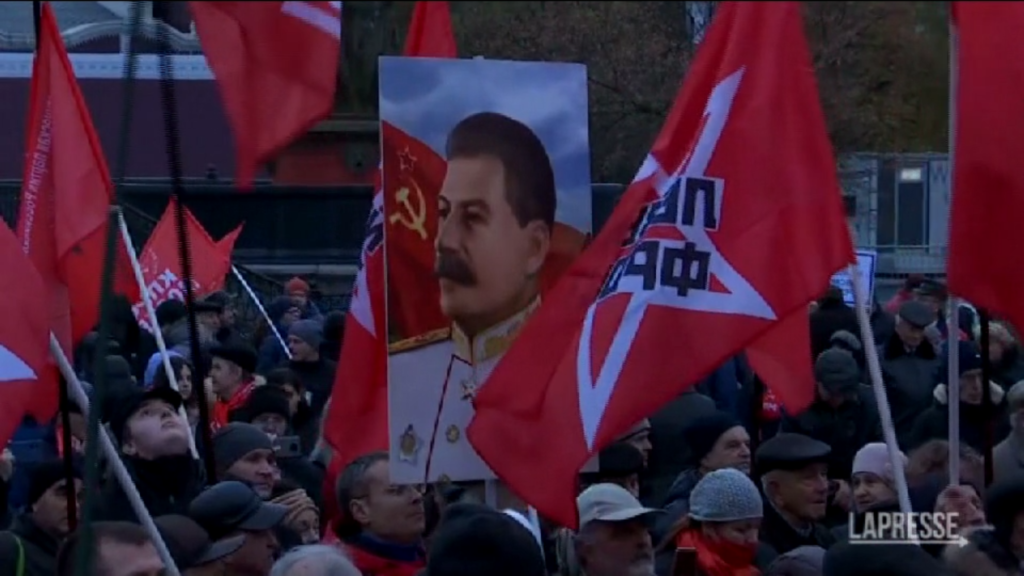 (LaPresse) – I comunisti russi hanno deposto fiori al Mausoleo di Lenin nella Piazza Rossa di Mosca per celebrare il 105° anniversario della Rivoluzione d’Ottobre (il 7 novembre 1917, 25 ottobre per il calendario giuliano). Alcuni sostenitori erano in piazza con stendardi sovietici e ritratti dei leader Vladimir Lenin e Joseph Stalin.