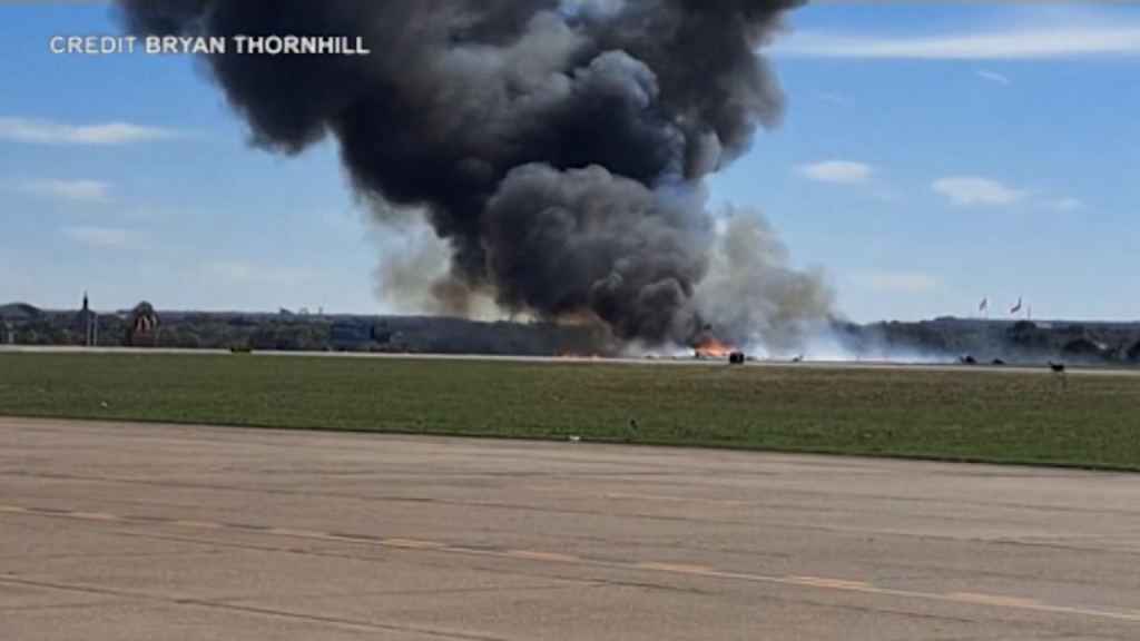 Due storici aerei militari si sono scontrati e schiantati al suolo sabato, durante un’esibizione aerea a Dallas, provocando una forte esplosione. I due velivoli, a bordo dei quali non è chiaro quante persone ci fossero, sono stati avvolti da una palla di fuoco e fumo. Si parla però di sei possibili vittime. Le squadre di soccorso si sono precipitate sulla scena dell’incidente all’aeroporto di Dallas, a circa 16 chilometri dal centro della città. I vigili del fuoco di Dallas hanno dichiarato al Dallas Morning News che non sono stati segnalati feriti tra le persone a terra. La collisione è avvenuta durante lo spettacolo Commemorative Air Force Wings Over Dallas.