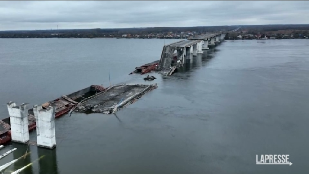 Il ponte Antonivskyi, che era il principale punto di attraversamento del fiume Dnipro in Ucraina a Kherson, è stato distrutto dalle truppe russe all’inizio di novembre quando le forze del Cremlino si sono ritirate dalla città.