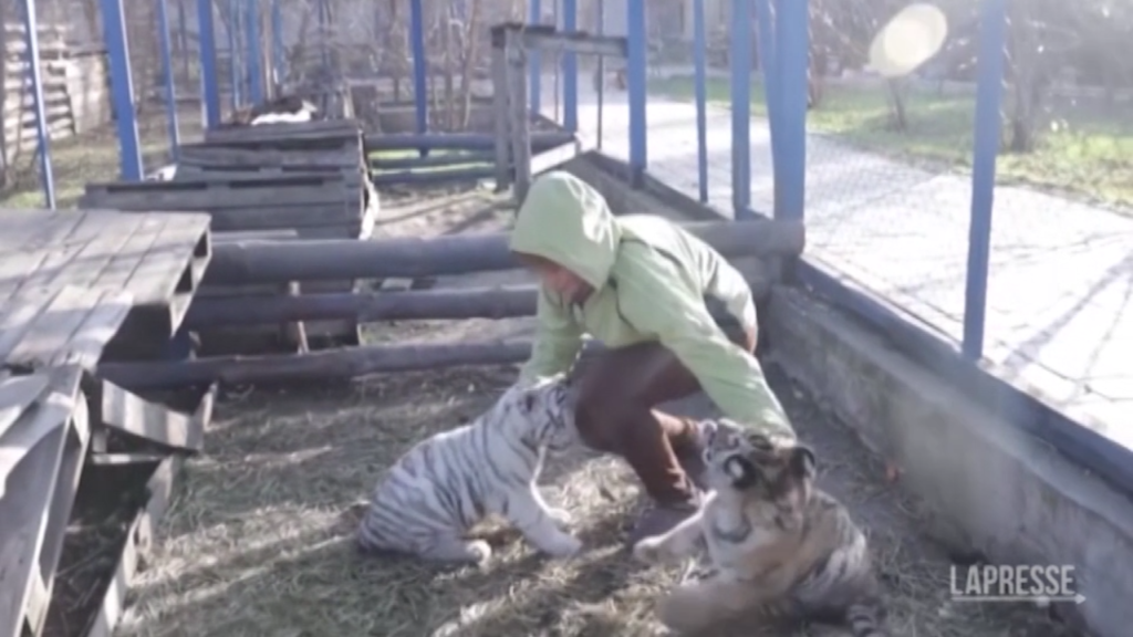 Allo zoo di Mariupol i volontari si prendono cura di due cuccioli di leone trovati abbandonati tra le macerie della città colpita dai bombardamenti russi. I piccoli sono stati allattati da una mamma cane che aveva partorito di recente i suoi cuccioli prima che i custodi potessero dar loro da mangiare con il biberon.
