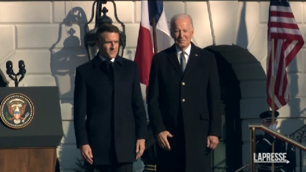 (LaPresse) Il benvenuto di Joe e Jill Biden a Emmanuel e Brigitte Macron, in visita di Stato negli Usa. Il presidente Usa e la First Lady hanno ricevuto il capo dell’Eliseo e la moglie alla Casa Bianca. Per i due leader in programma un colloquio nello Studio Ovale e stasera la cena ufficiale.