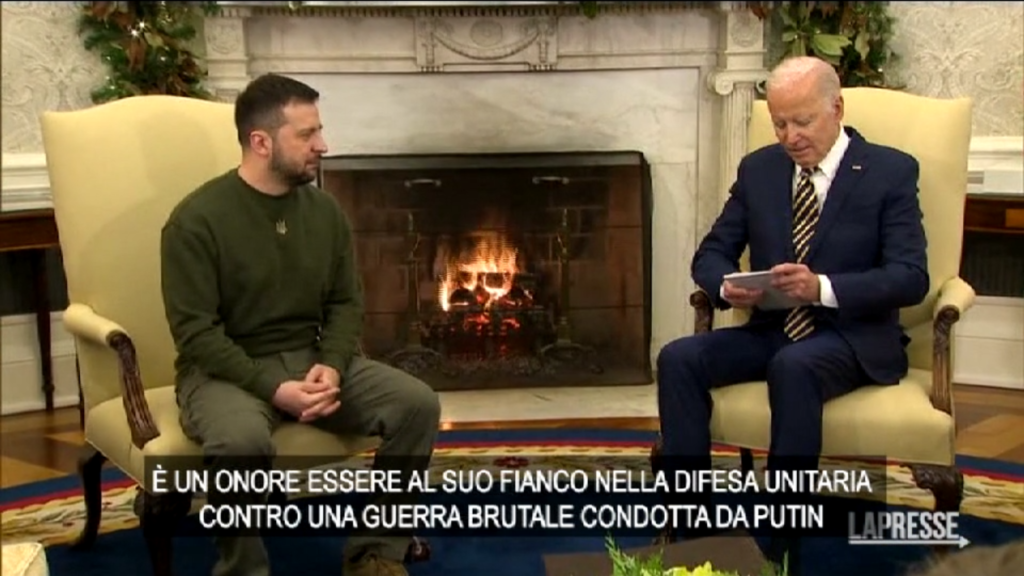 “Un onore essere al vostro fianco nella difesa contro la guerra brutale condotta da Putin”. Lo ha detto Joe Biden, rivolto a Volodymyr Zelensky, nel breve scambio di battute che ha preceduto il loro colloquio nello Studio Ovale della Casa Bianca.