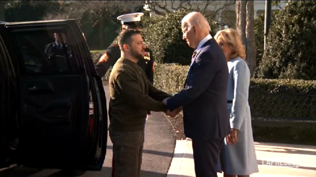 Volodymyr Zelesnky è arrivato alla Casa Bianca mercoledì sera (ora italiana), dove è stato ricevuto dal presidente Joe Biden e dalla first lady Jill. Anche in questa occasione, il presidente ucraino indossa il consueto outfit militare, diventato un suo tratto distintivo dall’invasione russa del 24 febbraio.