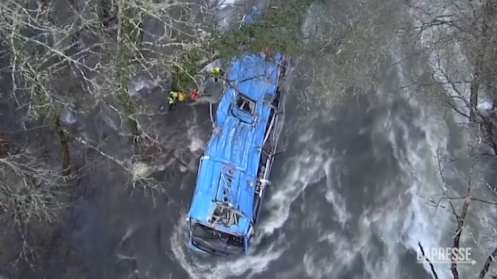 Sei morti in Spagna in un incidente avvenuto sabato sera in Galizia, dove un autobus è caduto nel fiume Lérez da un ponte a Cerdedo-Cotobade. Il mezzo precipitato per 40 metri. Ci sono solo due sopravvissuti, il conducente, di 63 anni, e una passeggera, che è riuscita a dare l’allarme chiamando i soccorsi dal cellulare per avvertire che il veicolo era caduto e si stava riempiendo d’acqua.