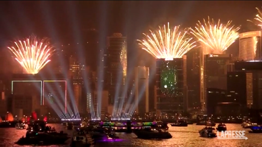 Hong Kong ha dato il benvenuto al nuovo anno con un enorme spettacolo di fuochi d’artificio e luci. Gli edifici che si affacciano sull’iconico Victoria Harbour sono stati illuminati con immagini colorate, mentre giganteschi fuochi d’artificio illuminavano il cielo notturno sopra di loro. Il porto separa l’isola di Hong Kong a sud dalla penisola di Kowloon a nord.