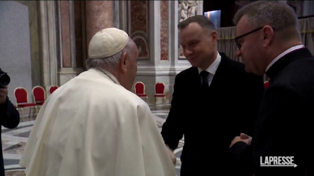 Papa Francesco ha salutato le delegazioni internazionali giunte in Vaticano per i funerali del Papa emerito Benedetto XVI. Il pontefice ha salutato e parlato brevemente con il presidente italiano, tedesco e polacco, i reali del Belgio e l’ex regina di Spagna. Stringendo la mano al presidente polacco Andrzej Duda, Francesco lo ha ringraziato “per quello che fate per l’Ucraina“. Solo l’Italia e la Germania sono state invitate a inviare delegazioni ufficiali, mentre altri leader sono venuti a titolo privato. Tra questi, diversi capi di Stato, almeno quattro primi ministri e due delegazioni di rappresentanti reali. Inoltre, una schiera di patriarchi si è unita a 125 cardinali nelle poltrone a lato dell’altare.